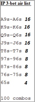 70% рук из списка IP 3-bet air list. (все руки выше T7s+)