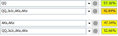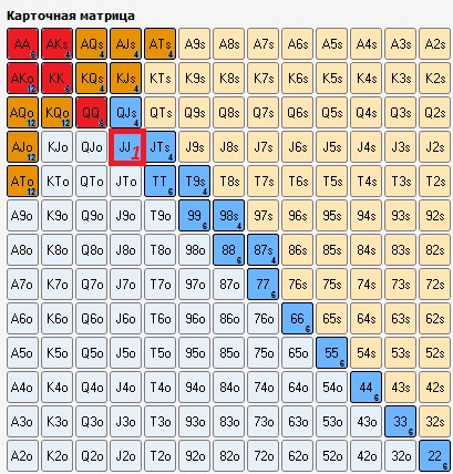 Наш велью спектр : QQ+, JsJc, AKs, AKo