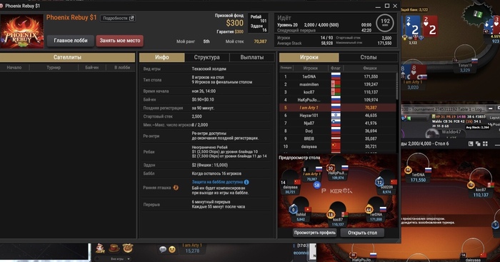 $4,39 — это меньше минкэша турнира, а у I_am_Arty_1 на момент остановки игры был 5-ый стек из 14 участников. Естественно, такой несправедливый расклад не устроил хиро и он вновь был вынужден отправиться в саппорт PokerOK, чтобы отстаивать свои права.