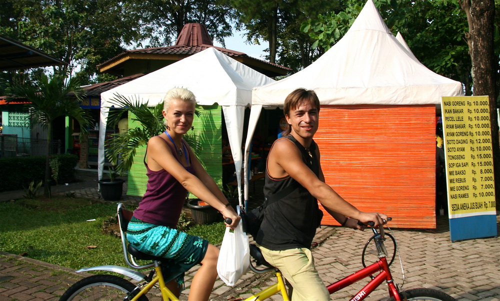Сойдя, наконец с поезда, мы, измотанные и уставшие, оказались в Джокьякарте. От вокзала нам нужно было добраться до туристической улицы, на которой расположены все хостелы города. Однако мы так устали, что совершенно забыли название этой улицы. Сразу у вокзала мы были пойманы в свои сети пристарелым рикшой, который и на английском-то особо не говорил. Объясняем ему, что нам нужна улица, где все отели города. Дед не понимает. А дальше происходит такой диалог: