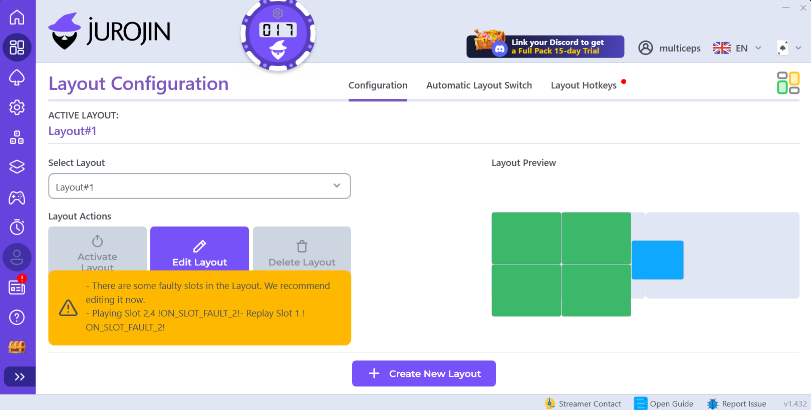 Большой минус программы — нет автоматического распределения окон и, соответственно, столов по слотам. Для этого при появлении каждого нового окна с отличающимся названием нужно использовать горячие клавиши.