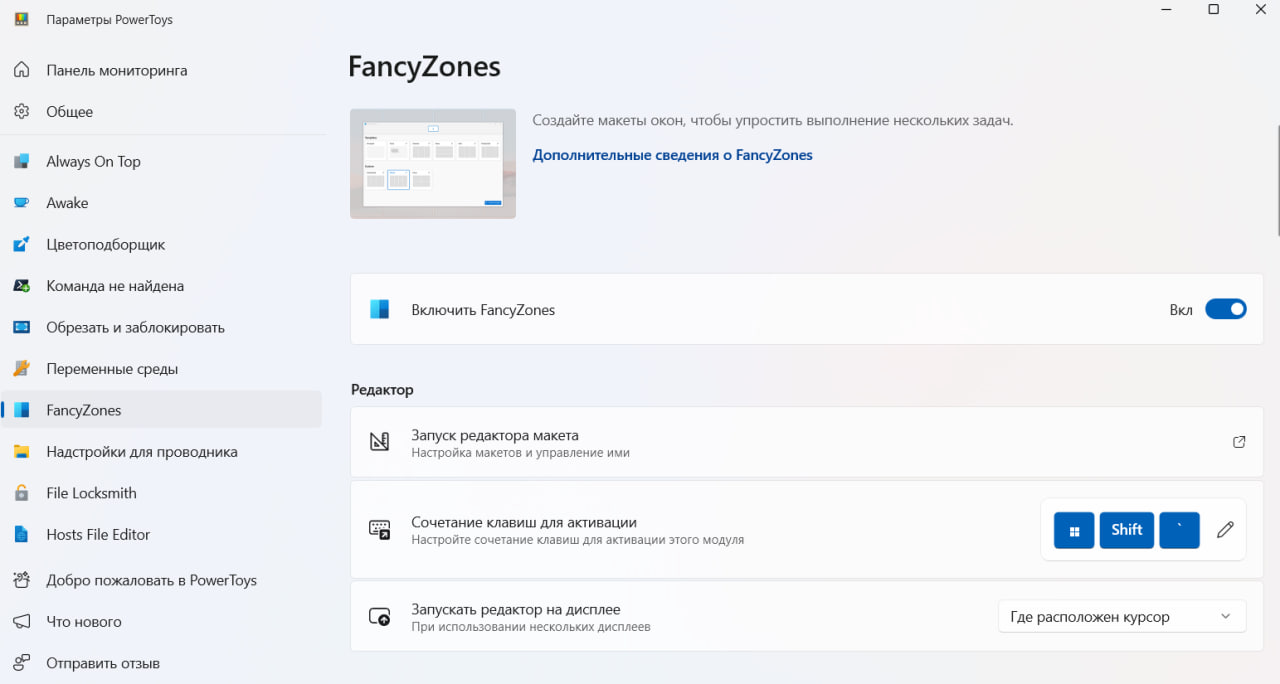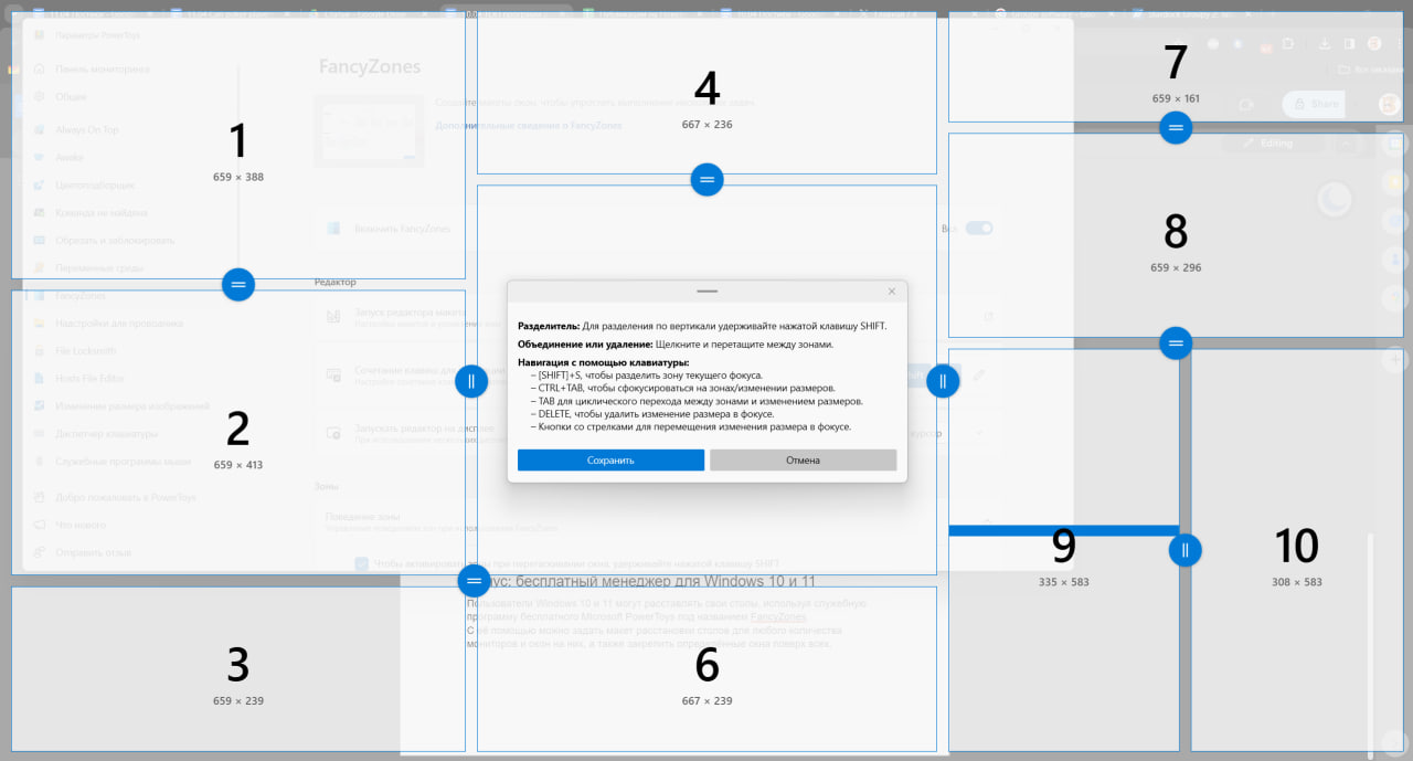Если вы не хотите платить за функционал специальных программ или нуждаетесь в максимальном просто методе расстановки столов и при этом пользуетесь устройством со свежей версией Windows, вам может подойти служебная программа бесплатного Microsoft PowerToys под названием FancyZones.