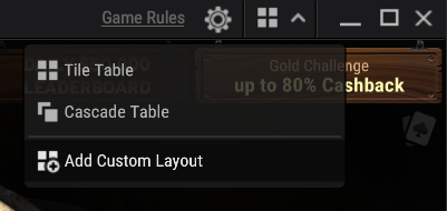 Непосредственно за столом игроки могут выбрать расположение столов сеткой или каскадом с указанием желаемого размера — для этого нужно нажать над столом на глаз.