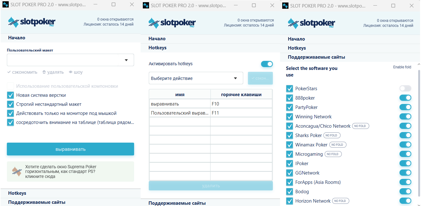 Остальные румы — в их числе RedStar Poker, ПокерОК, Покердом, WPT Global, partypoker, 888poker, PokerStars, JackPoker, rptBet, CoinPoker, клубные приложения PPPoker, PokerBROS, ClubGG— напрямую не запрещают менеджеры для расстановки окон, пока те не нарушают главные правила: