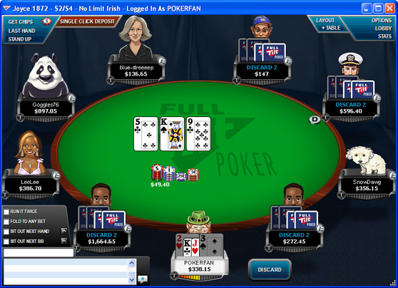 На Full Tilt Poker появилась новая разновидность техасского холдема, которая называется ирландским покером. Правила схожи с обычным холдемом, но главное отличие заключается в том, что на префлопе игроку сдают четыре карты, две из которых он обязан скинуть после круга торговли на флопе. Дальше розыгрыш происходит в привычном формате, и обладатель старшей комбинации из пяти карт забирает банк на шоудауне, если раздача до него вообще дойдёт.