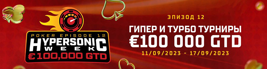 Episode 12: Hypersonic Week неожиданно для игроков прошёл как часть турнирной серии Autumn Festival. Он также дал игрокам возможность поиграть серийники в рамках одной недели с 11 по 17 сентября, причём все — в форматах турбо и гипер-турбо. Самая большая гарантия была в €25 Hypersonic Main €25K GTD.