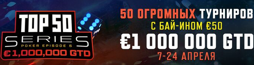 - 17 однодневных турниров — с бай-инами €12.50, €30, €50, €70 и гарантиями €5К и €10К;