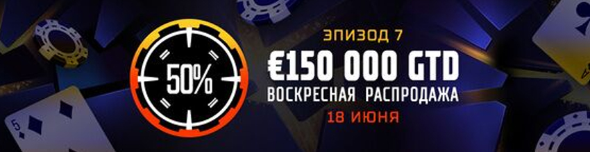 Episode 7: Sunday Sale вновь «поменял правила» — в этот раз вместо мини-серии или крупного особого турниры RedStar Poker предложил игрокам знакомые им воскресники по сниженным ценам. В итоге за один день 18 июня они смогли сыграть 10 турниров со скидкой в 25-50%, в том числе €50 SALE Main Sunday Sweat €50K Gtd.