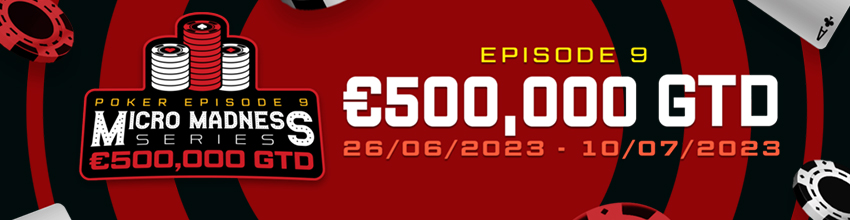 Episode 9: €500,000 GTD Micro Madness Series прошёл как вторая крупная серия «эпизодов» с 26 июня по 10 июля. Игрокам предоставили 115 турниров с бай-инами от €2 до €20 и гарантиями от €1,000 до €50,000, где роль Мейна выполнял €10 Micro Main €50K Gtd. Интересно, что в этом турнире ожидался оверлей, но его удалось избежать — он собрал 6,442 входа и €58,622 призового фонда, победителем стал 26-летний Джовани «GiovaniMB» Матеус Боргес — с учётом баунти он получил €6,153.