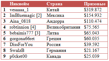 Регуляр из Греции под ником «gorgona66ret» стал 6-м, а литовский регуляр Матас «bebaimis777» Цимболас (Matas «bebaimis777» Cimbolas) занял 5-е место.