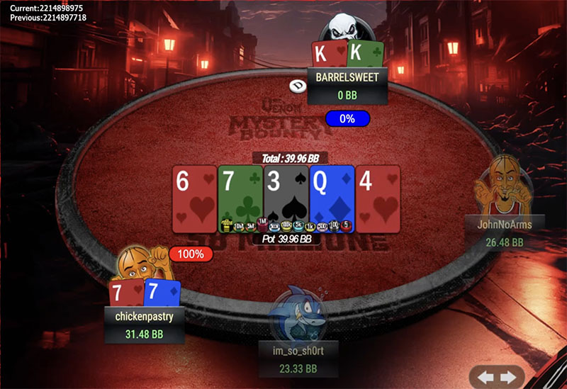 Игра в 4-max продолжалась 40 минут. Каждый из оставшихся участников побывал чиплидером. В итоге BARRELSWEET выбыл в, возможно, самом дорогом в своей карьере выставлении с КК против 77 Иван «chickenpastry» Лимейра.