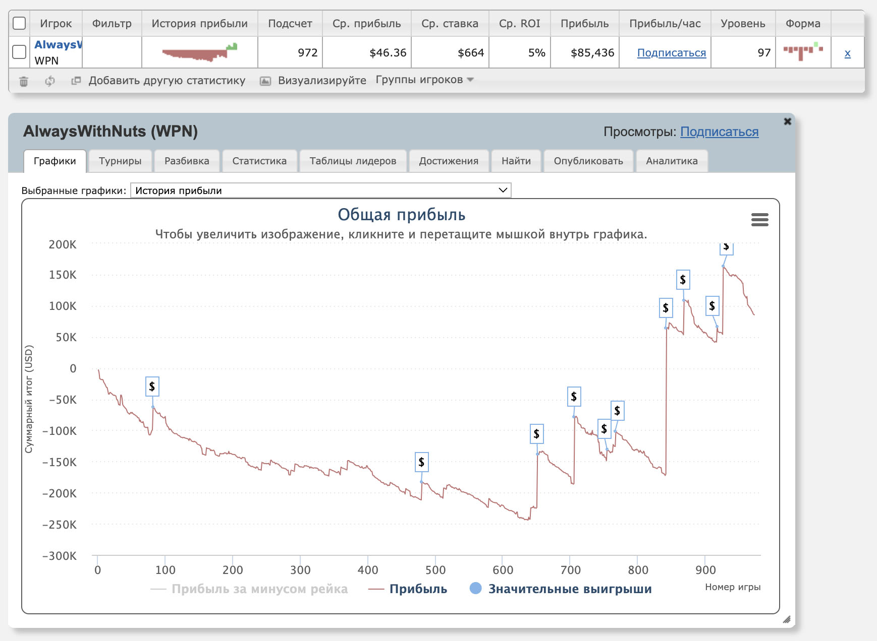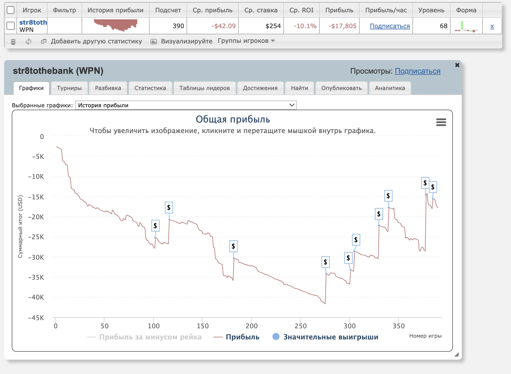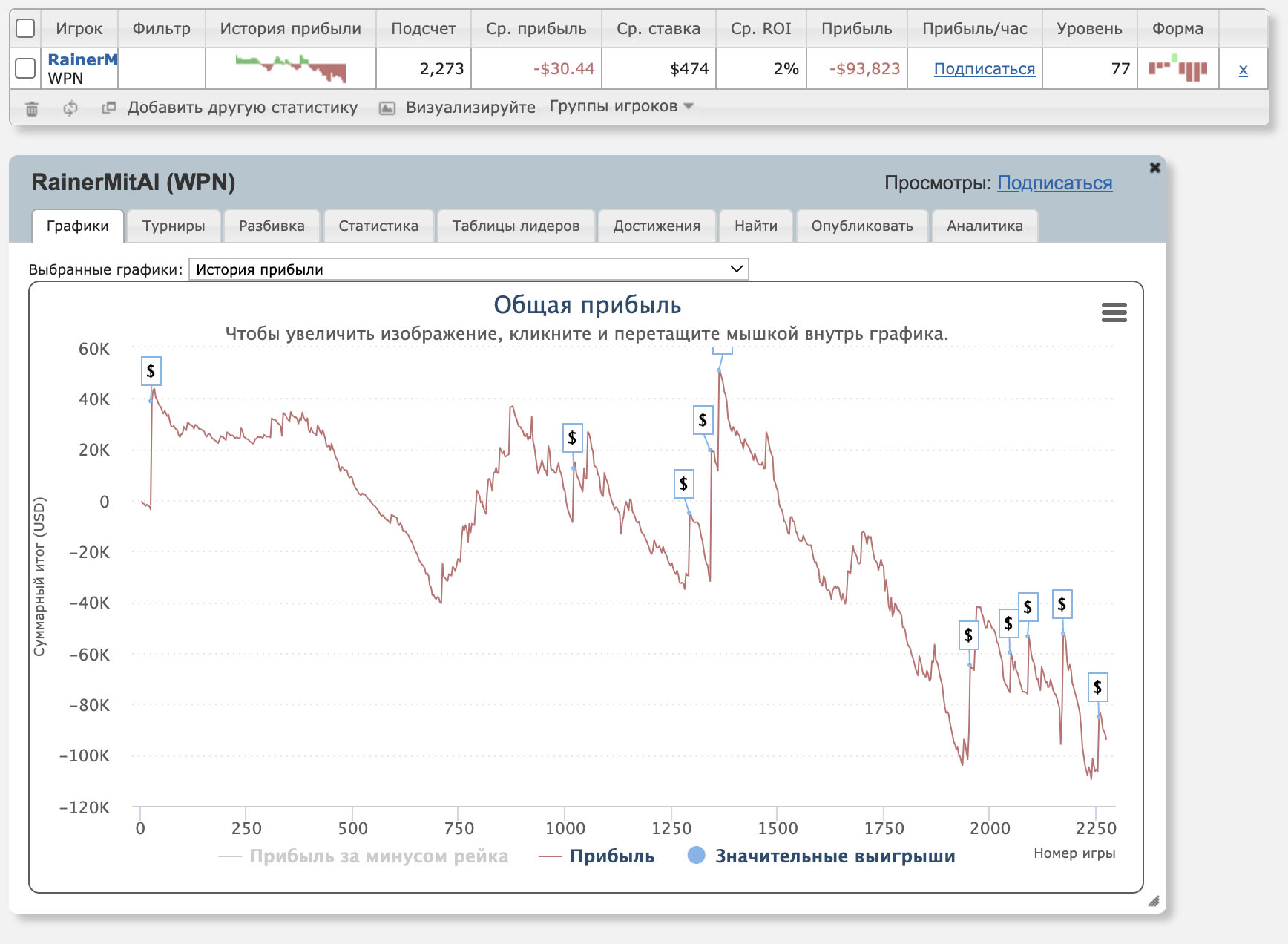 IRBLTG играет на PokerKing с 2020 года. С мая 2024 года он оформил более $490K призовых без учёта доезда в Веноме.