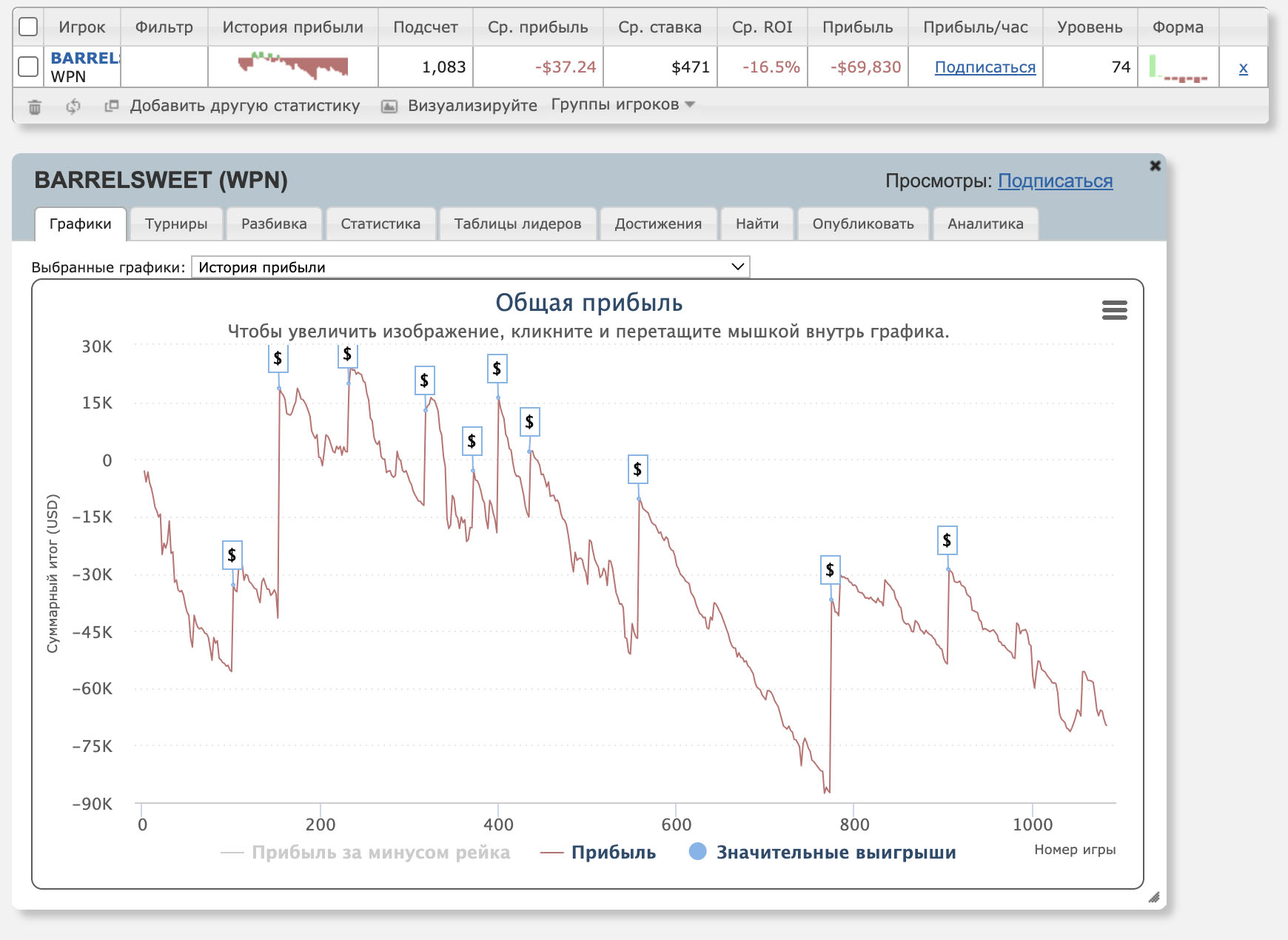 До этого турнира BARRELSWEET "летел" на PokerKing на $70K.