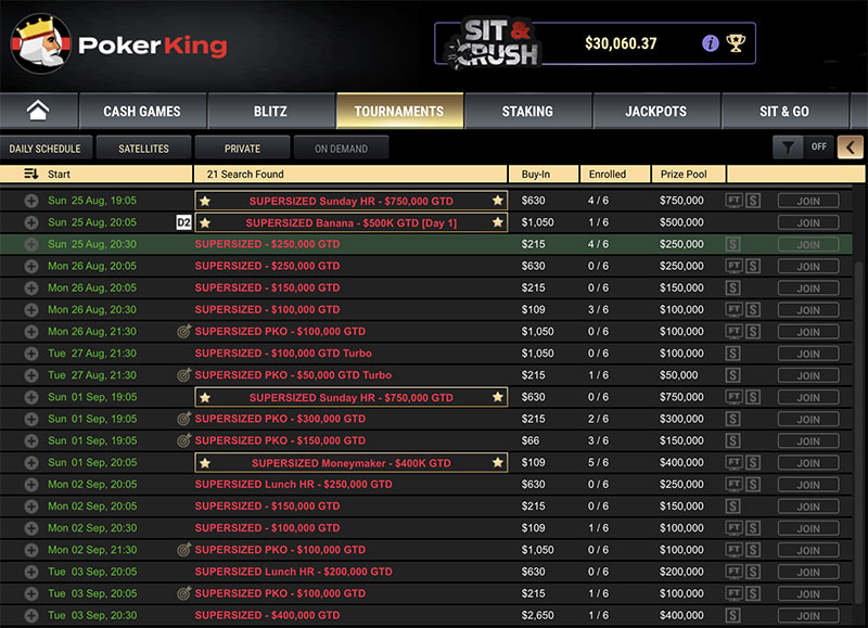 Серия Supersized Tourney Week $5M GTD будет проходить на PokerKing с 25 августа по 8 сентября