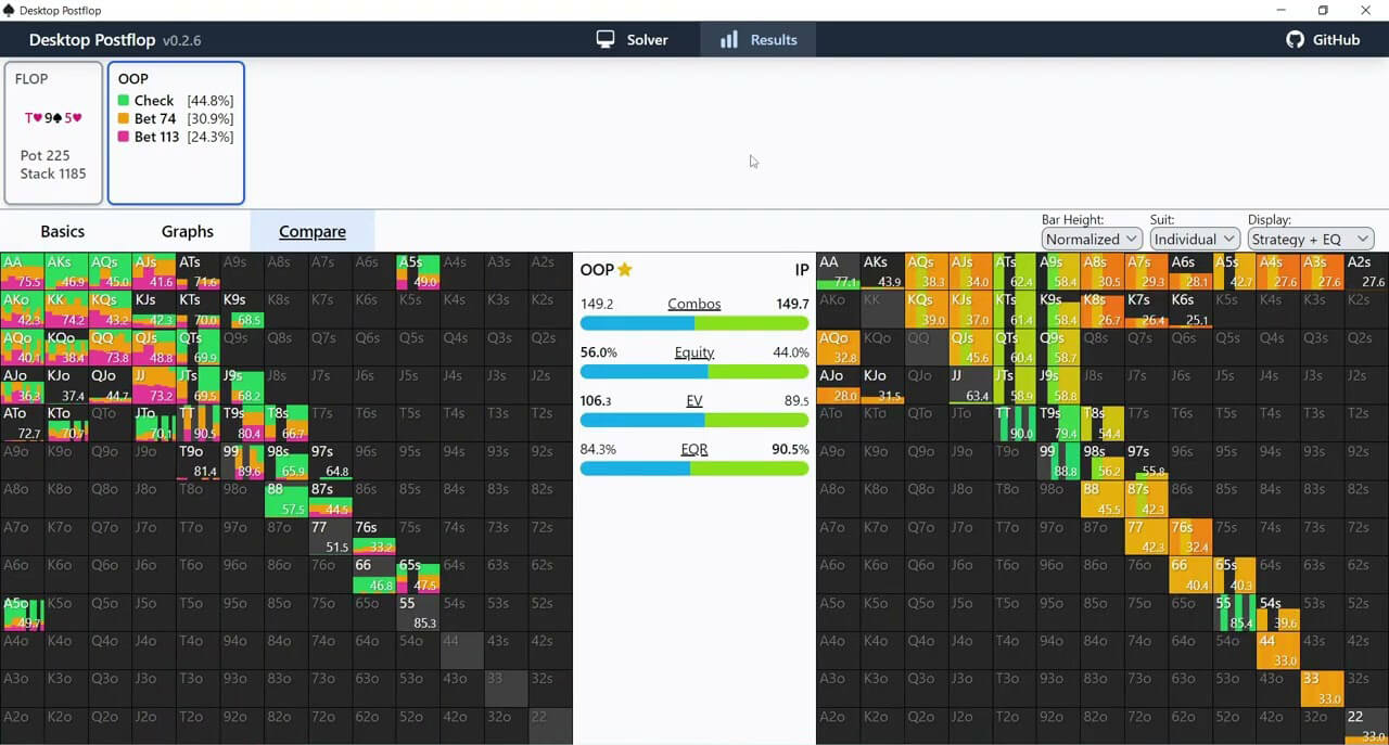 Солвер Desktop PostFlop можно скачать с GitHub. Работает на Windows и Linux, не работает на Mac. Пользователи Reddit сравнивали Desktop PostFlop и PioSOLVER — решения были достаточно близки. Минус солвера — решения сохранять нельзя. Гайд по Desktop PostFlop можно посмотреть на YouTube.