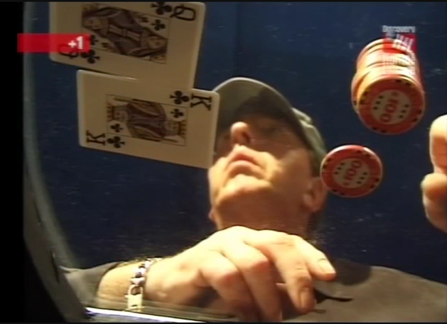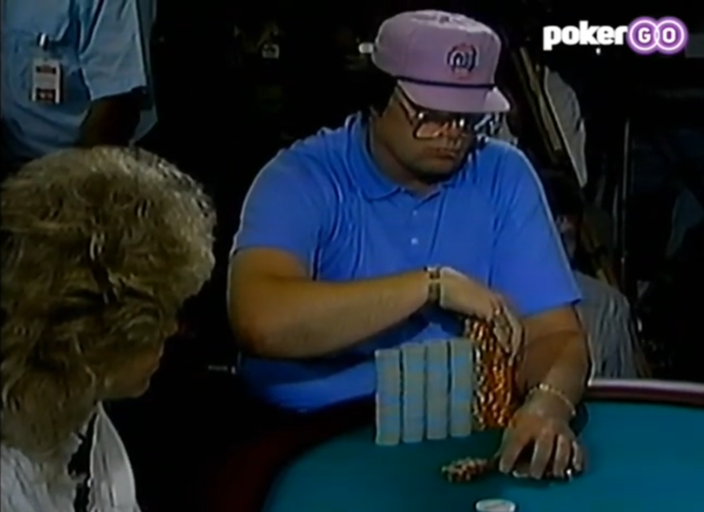 Типичная картинка покерного видео того времени выглядела вот так — на этом скрине кадр из WSOP 1990 Main Event.
