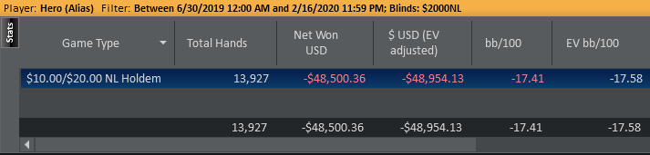 Я пытался подняться выше в июне, августе и сентябре 2019, а также в феврале 2020. Это было удручающе — я гриндил NL1K только для того, чтобы залить профит на NL2K. Тогда я даже думал, что регуляры NL2K — это просто какие-то другие люди, которых мне, возможно, никогда не удастся побить. И хотя в итоге я смог побить лимит, далось мне это только упорным трудом и настойчивостью.