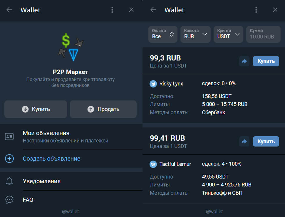 - P2P Market — встроенный рынок Телеграма;