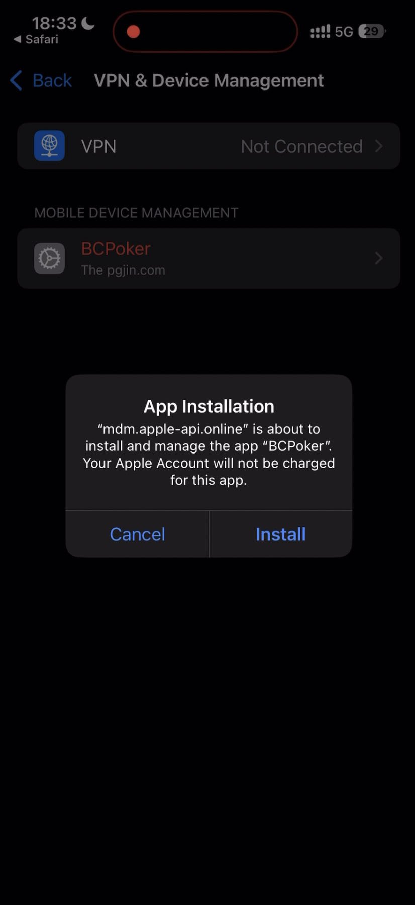 7. Когда профайл будет установлен, вам предложат установить приложение. Выберите «Install».