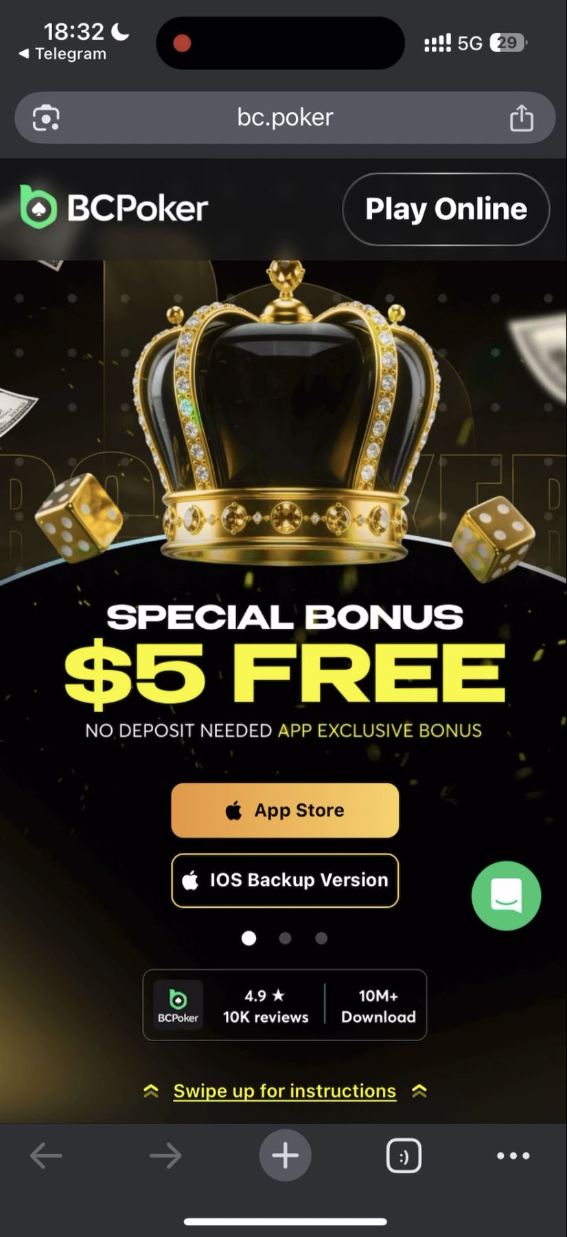 1. Переходите по ссылке (если переход не работает, скопируйте и вставьте ссылку в новом окне в браузере https://bc.poker/a/POKEROFF — только почистите куки и кеш или используйте анонимный режим) и выбирайте App Store или iOS Backup Version (если кнопка App Store не работает).
