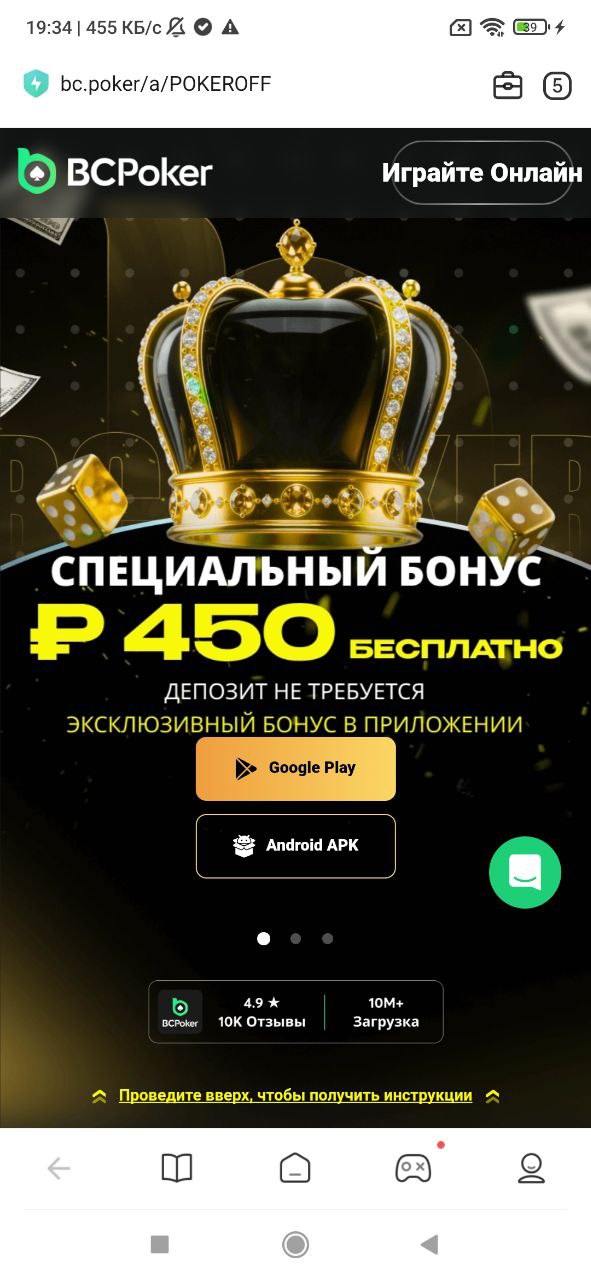 1. Переходите по ссылке (если переход не работает, скопируйте и вставьте ссылку в новом окне в браузере https://bc.poker/a/POKEROFF — только почистите куки и кеш или используйте анонимный режим) и выберите «Android APK» или «Google Play»
