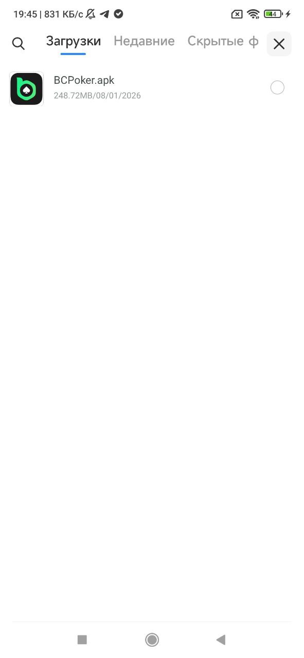 3. Зайдите в загрузки и выберите BCPoker.apk. Выберите «Установить». Откройте установленное приложение.