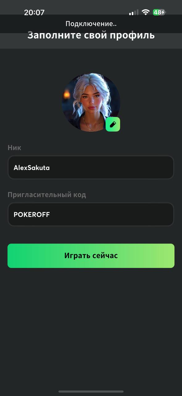 После регистрации выберите свой ник. В поле "Пригласительный код" должно быть указано POKEROFF.