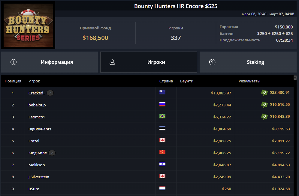 Более недели назад стартовала серия Bounty Hunters на GGПОКЕРОК. Посмотрим, как в ней складываются события на примере прошлых выходных — кто победил и были ли оверлеи.