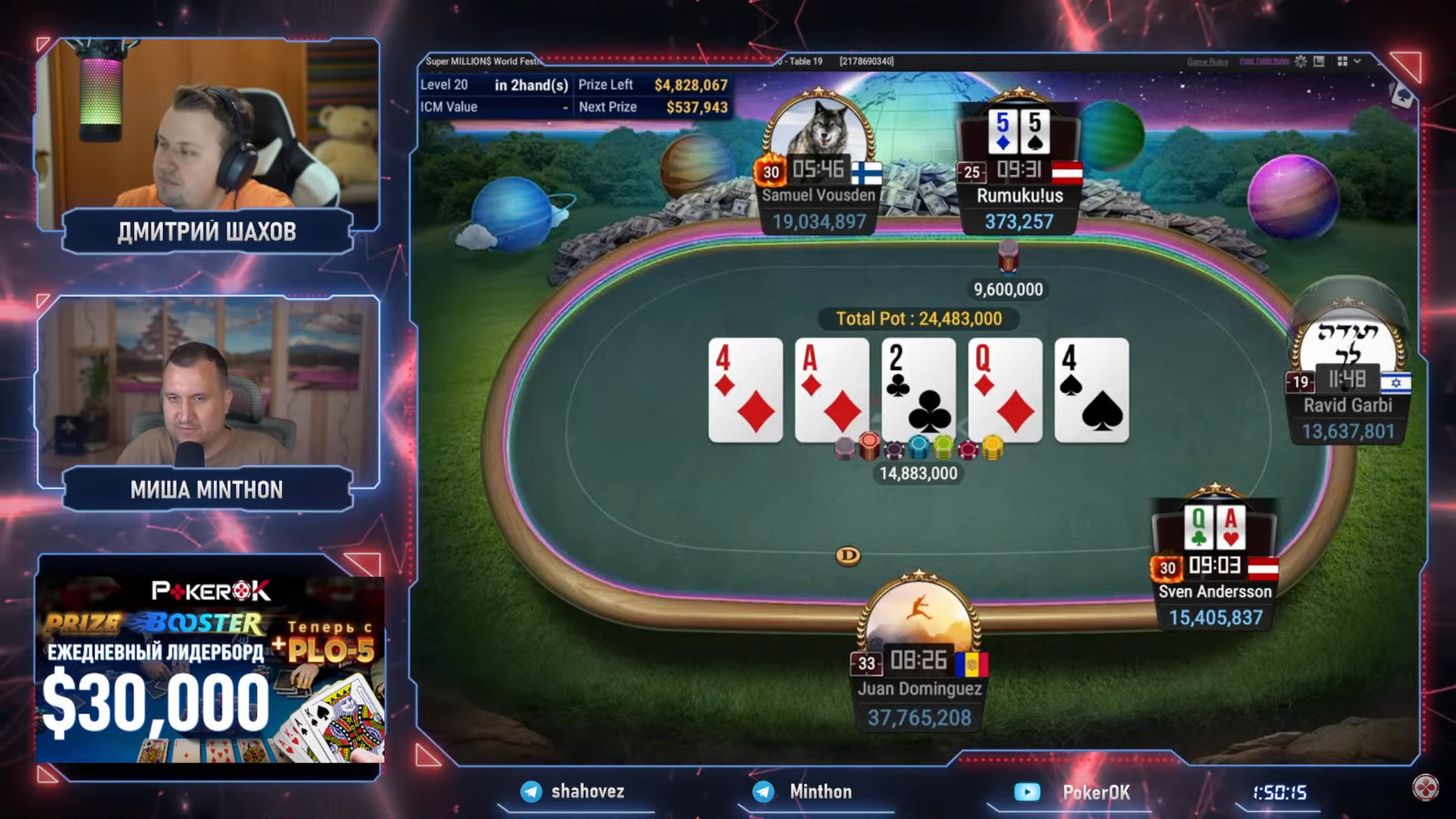 Удача и скилл помогли Леону затащить турнир — победа принесла ему $1,518,400. Теперь по SharkScope у Штёрна $2,107,310 профита на 8,110 турниров ABI$386.