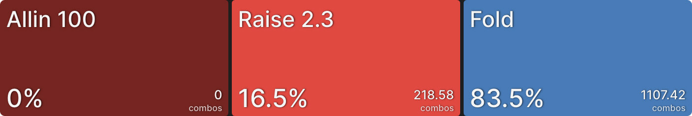 Также размер оупен-рейза уменьшается с 2,3 до 2,1bb. В первую очередь это связано с тем, что в более глубоких стеках сложнее построить крупный банк, чтобы пойти олл-ин на ривере. Поэтому в глубоких стеках размер ставок на префлопе и постфлопе часто больше, чем в неглубоких стеках.