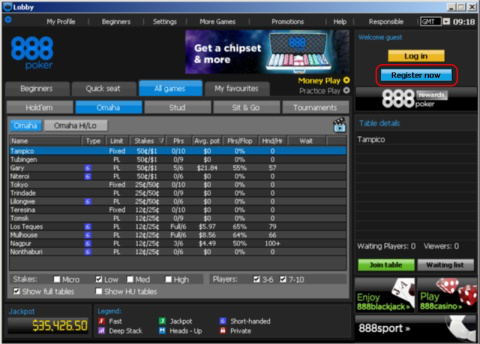 Комната 888Poker одна из самых быстрорастущих и перспективных в мире онлайн покера. Акцент работы комнаты нацелен на привлечение новых игроков, а регуляры могут почувствовать некоторые ограничения в привычных возможностях. Так новым игрокам понравятся 3D-столы и командные турниры, а регуляры не смогут открывать более 6 столов одновременно. Тем не менее, привлекательность полей 888Poker остается ключевым аргументом для регистарции, к чему мы и приступим.