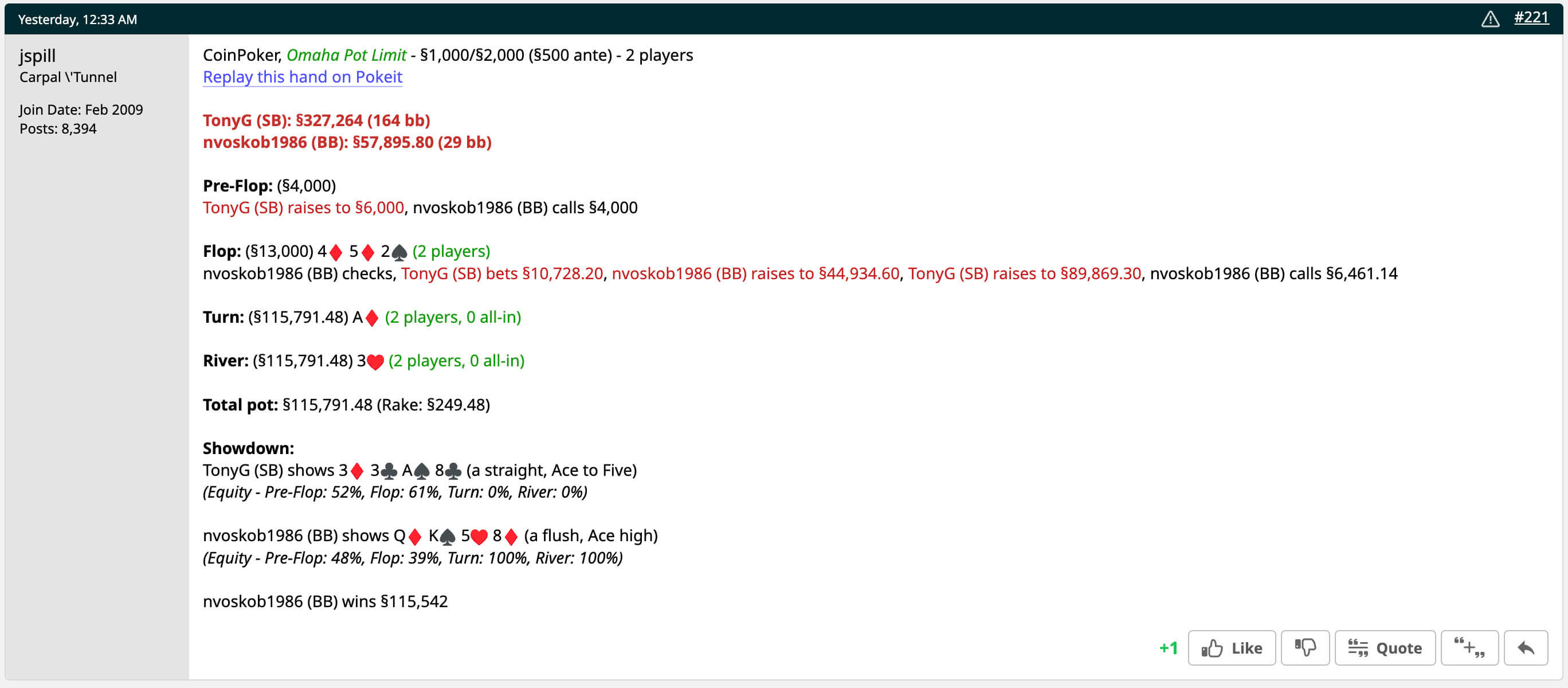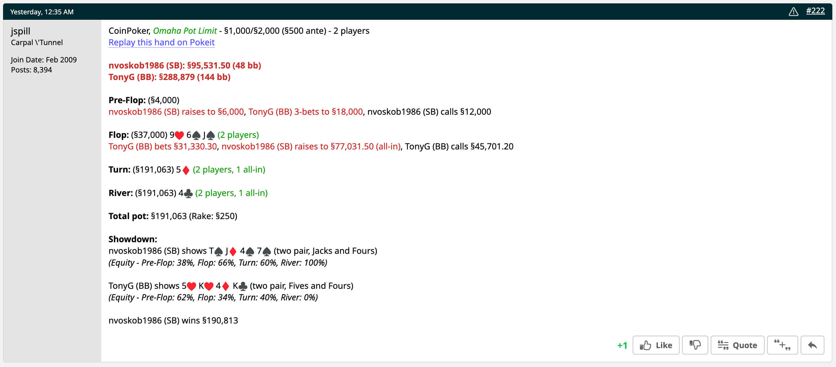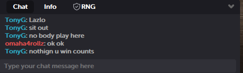 Параллельно с хайроллескими турнирами в воскресенье собрался дорогой кеш. Играли PLO $1,000/2,000/$500. Tony G хотел играть против любителей и попросил в чате Ласло Буйташа покинуть стол.