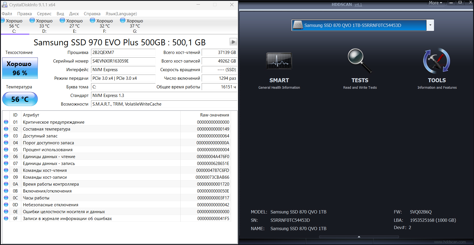 Для них можно использовать бесплатные программы вроде Crystal Disk Info и HDDScan, которые дают инструментарий для тестирования разной степени глубины.