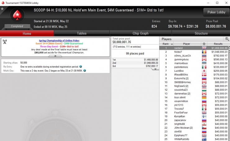 Такой огромный прайзпул, как показывает практика, перебить довольно просто – туманная перспектива выиграть миллион, вложив всего 500 долларов, хорошо соответствует американской мечте, поэтому привлекает многих американцев и туристов. В прошлом году в анaлoгичный турнир было сделано больше 22'000 входов, так что в этом году нас, скорее всего, опять ожидают километровые очереди на регистрацию и покерные столы на кухне...