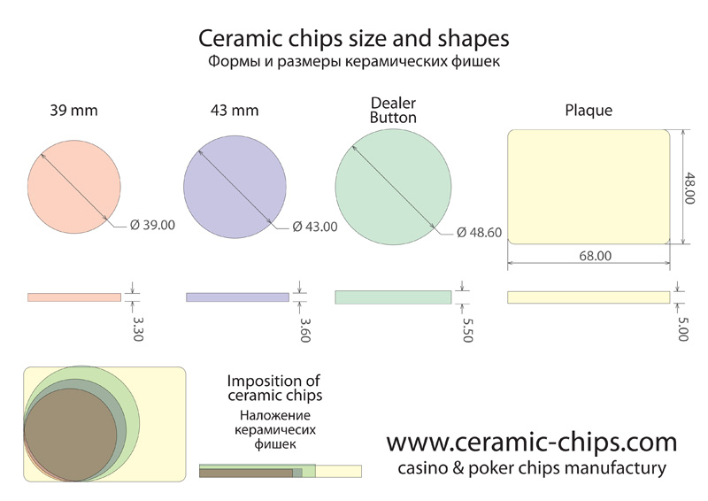 Керамические фишки выпускаются в стандартной круглой форме и в форме плекс (плаки).