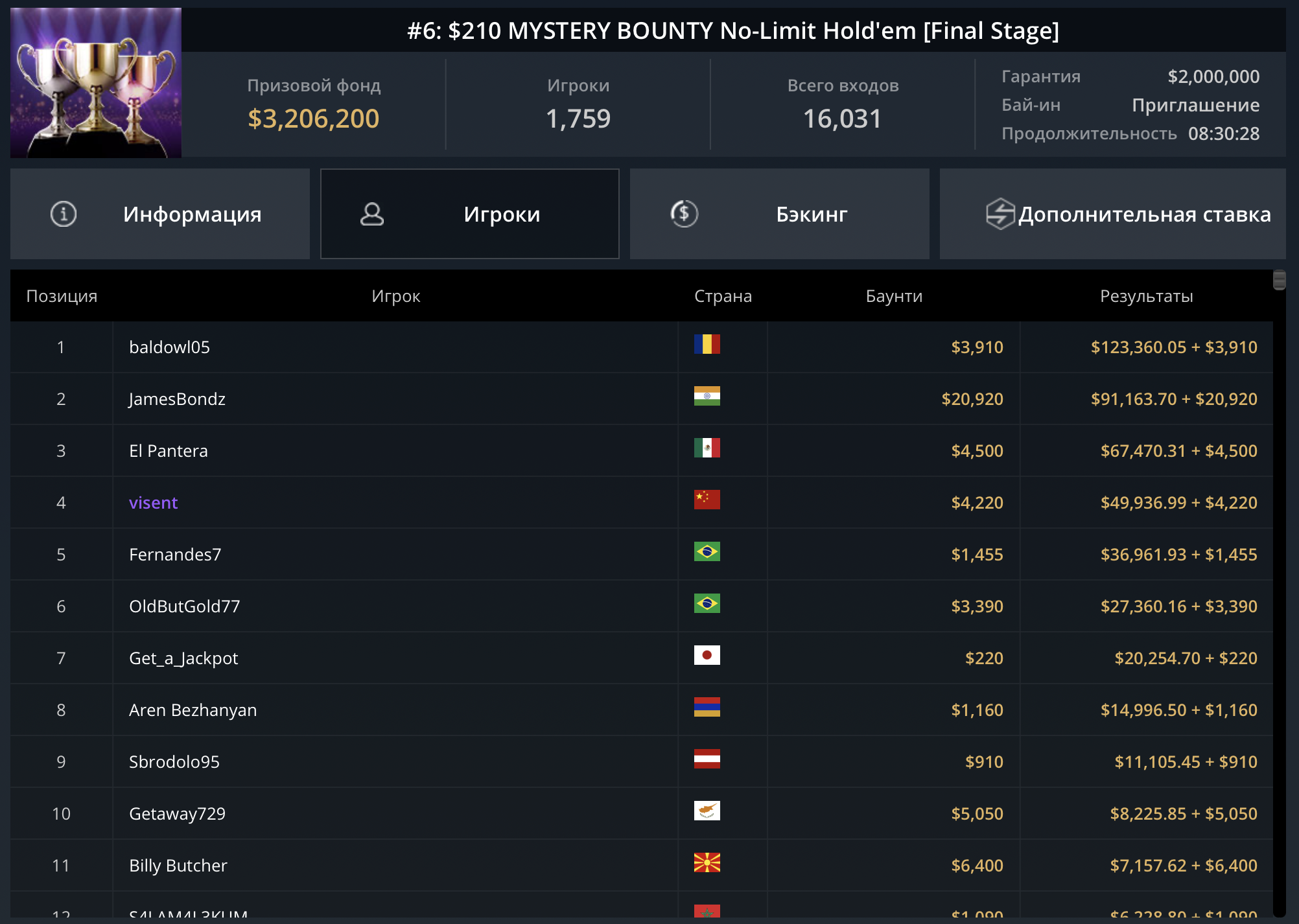 $210K достались AlexNikolas007, чей флаг в клиенте по ходу турнира поменялся с украинского на российский.