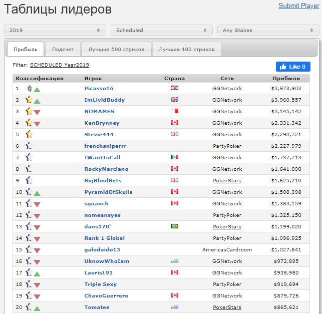 Для определения лучшего турнирного онлайн-игрока мы использовали сервис Sharkscope и фильтр «Scheduled» турниры 2019.