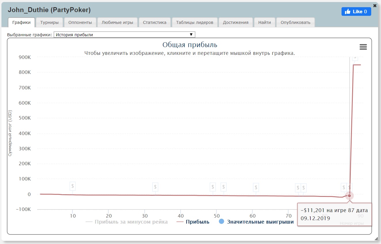 — после пятого места в MILLIONS ONLINE 2019 его график на partypoker взлетел до +$848k. Однако, как и у многих финалистов этого турнира, его sharkscope до начала турнира находился на минусовой отметке: