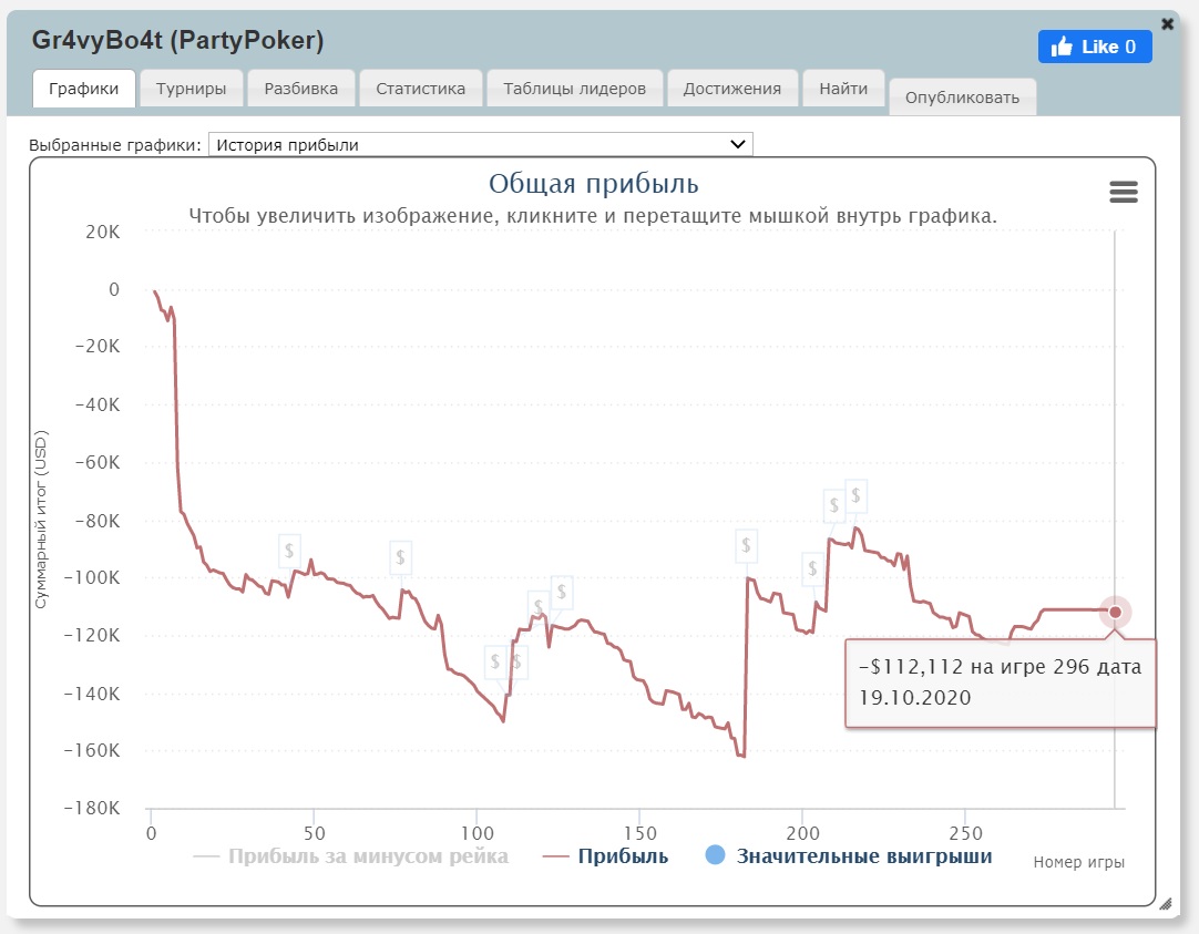 Как можно заметить из графиков выше, при среднем бай-ине ~$1k partypoker pro периодически не против сделать 3 входа в Powerfest по PLO за $25k. Видимо, вина за такие выстрелы на главном карьерном успехе шотландца: