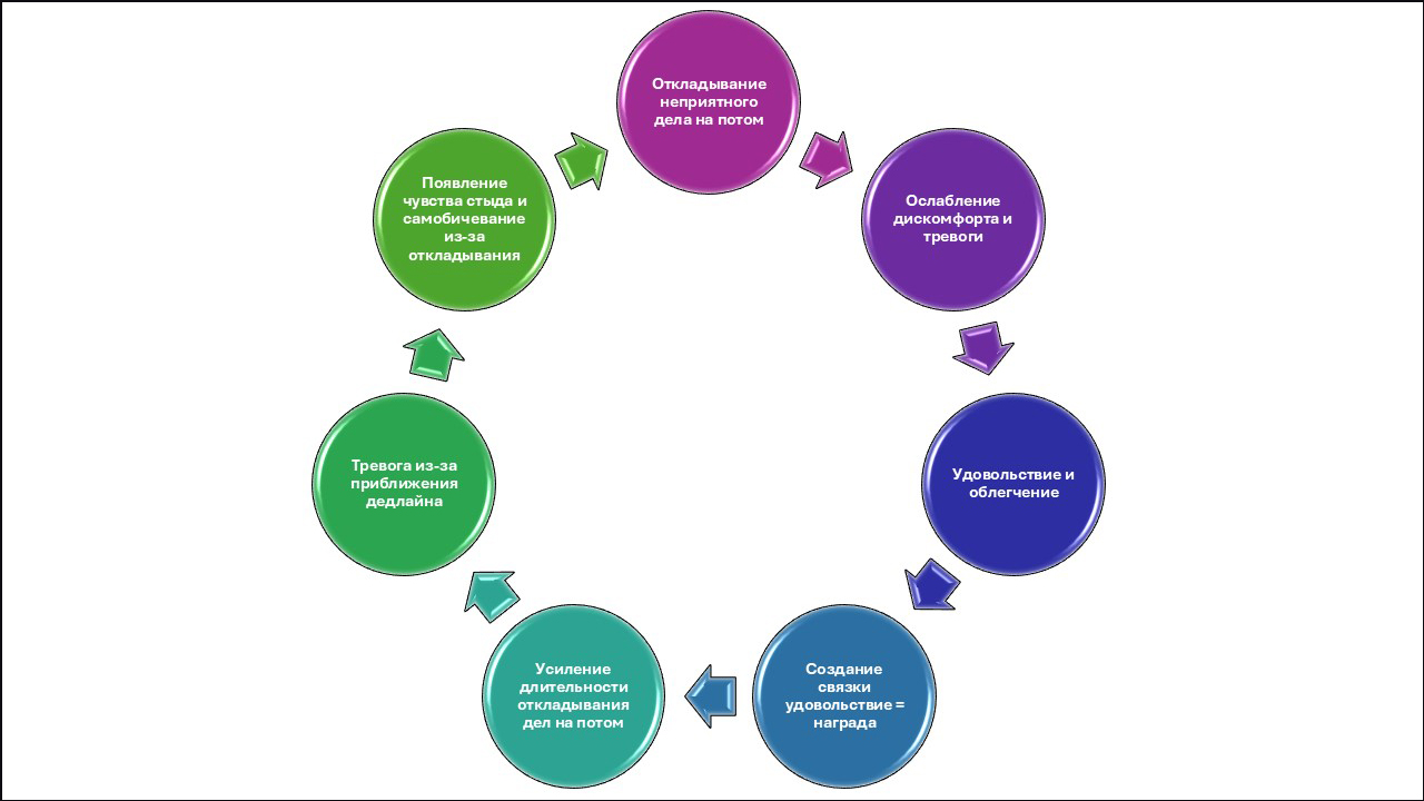 По мнению авторов исследования, лень обычно появляется на участках «круга прокрастинации», которые сопряжены с активным избеганием неприятного дела и получением удовлетворения от его откладывания.