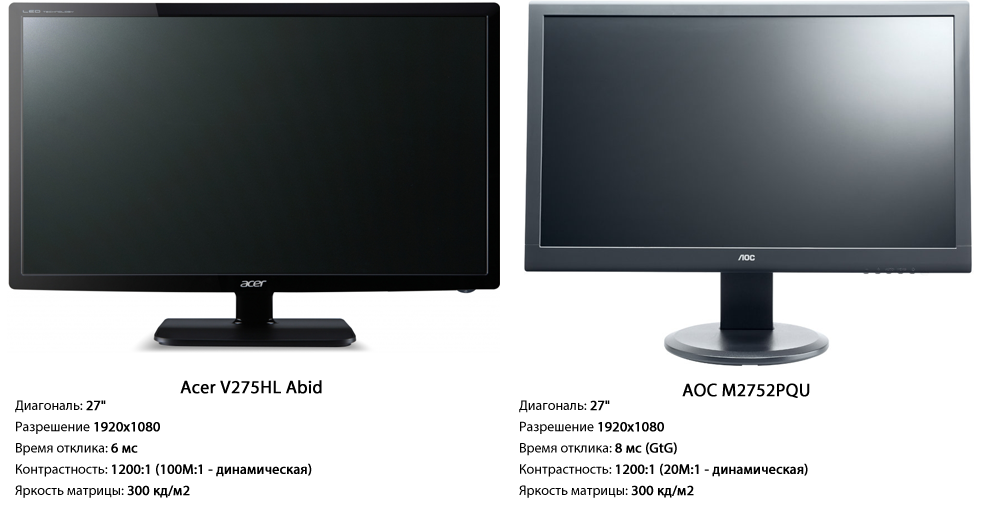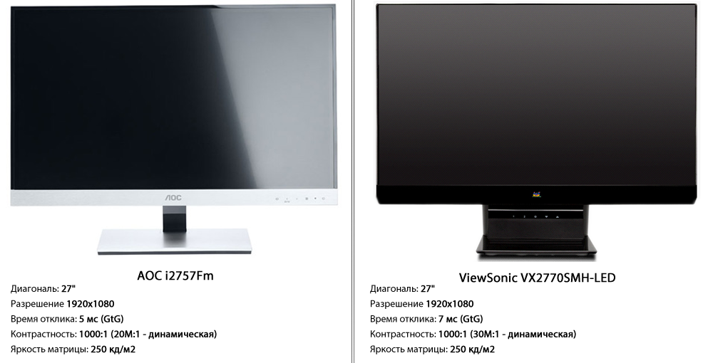 Очень советую почитать детальные технические обзоры от специалистов в теме по AOC i2757Fm и ViewSonic VX2770SMH-LED. За свою цену, пожалуй, это наилучший выбор из предложенных сегодня мониторов. Скажу честно, я бы покупал именно AOC, но и ViewSonic выглядит достойно за свою цену.