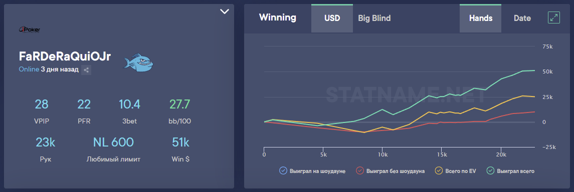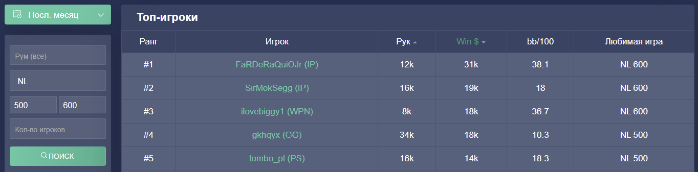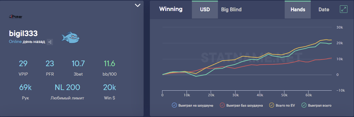 Дисклеймер: все покерные сайты, собирающие базу результатов, не на 100% точны. Много рук теряется.
