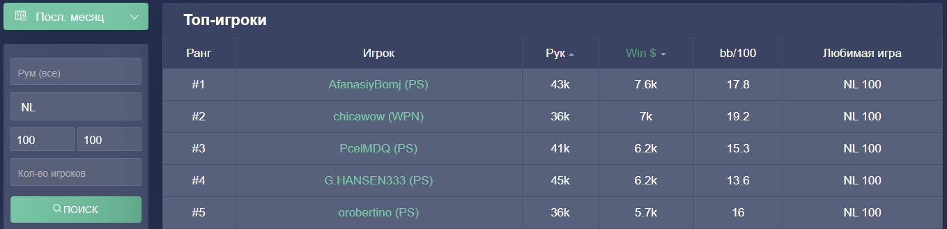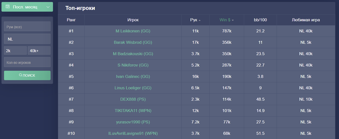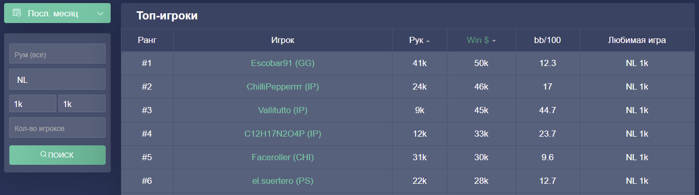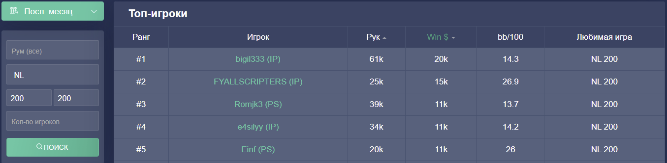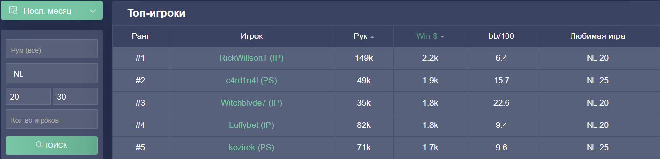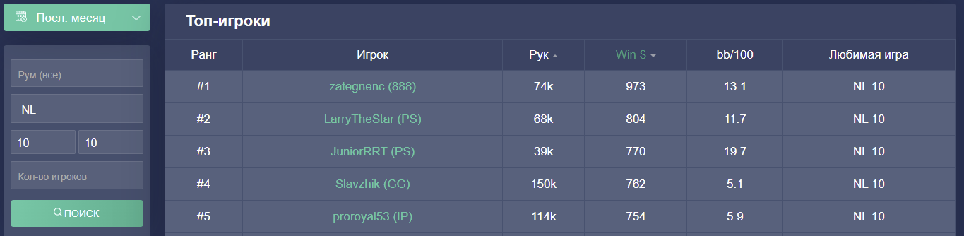 Дисклеймер [2]: далее мы будем упоминать денежные результаты игроков за месяц. Они не показывают полную картину — большинство регуляров играет несколько румов, кто-то подключает быстрый покер (Zoom / Rush / Boost и так далее), кто-то получает хороший рейкбек.