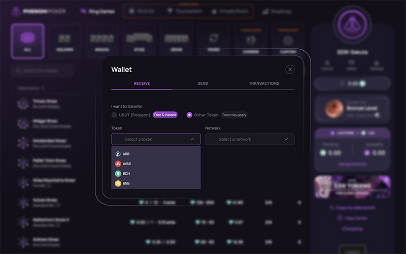 - На PhenomPoker есть депозит и кешаут в криптовалюте