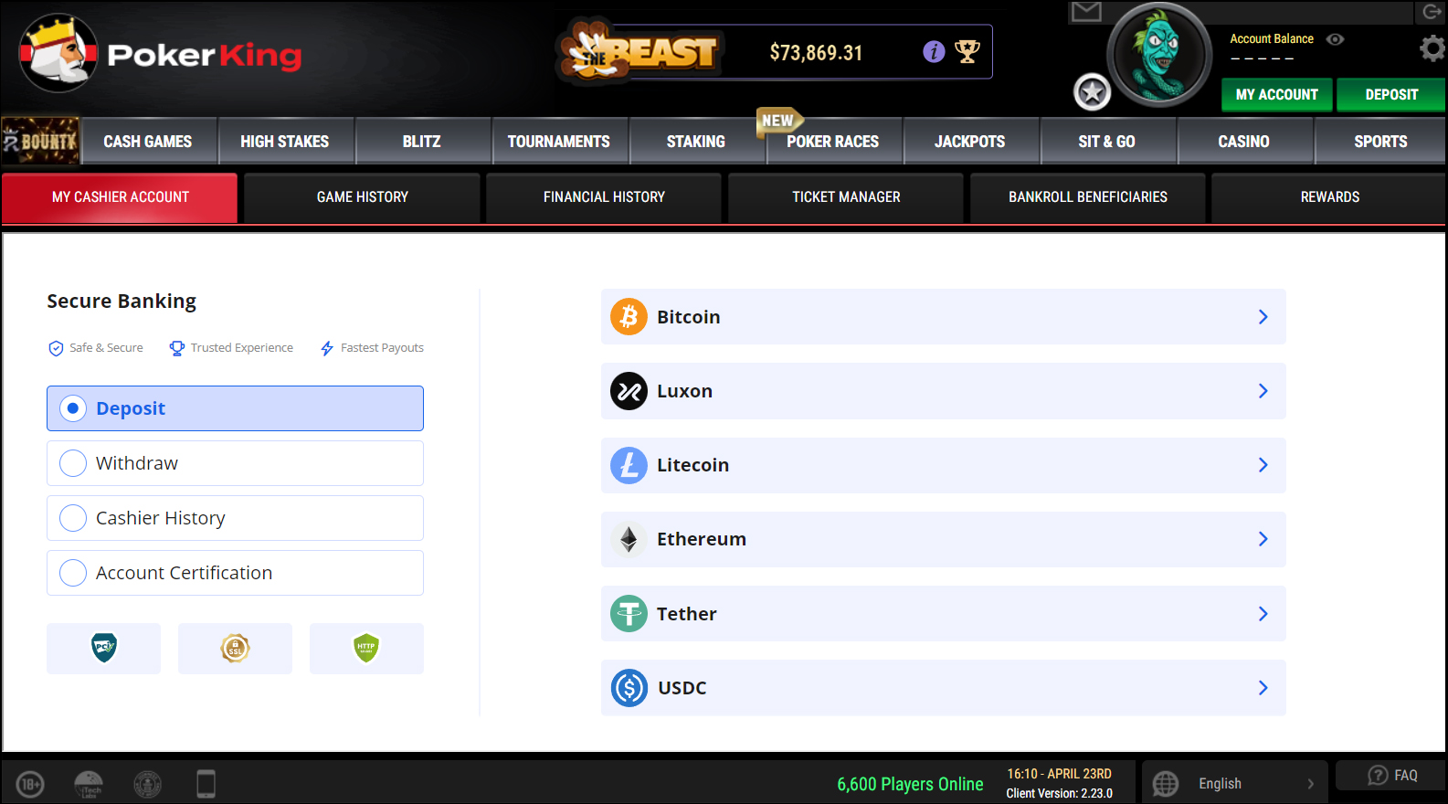 - В руме PokerKing доступны депозит и кешаут в криптовалюте