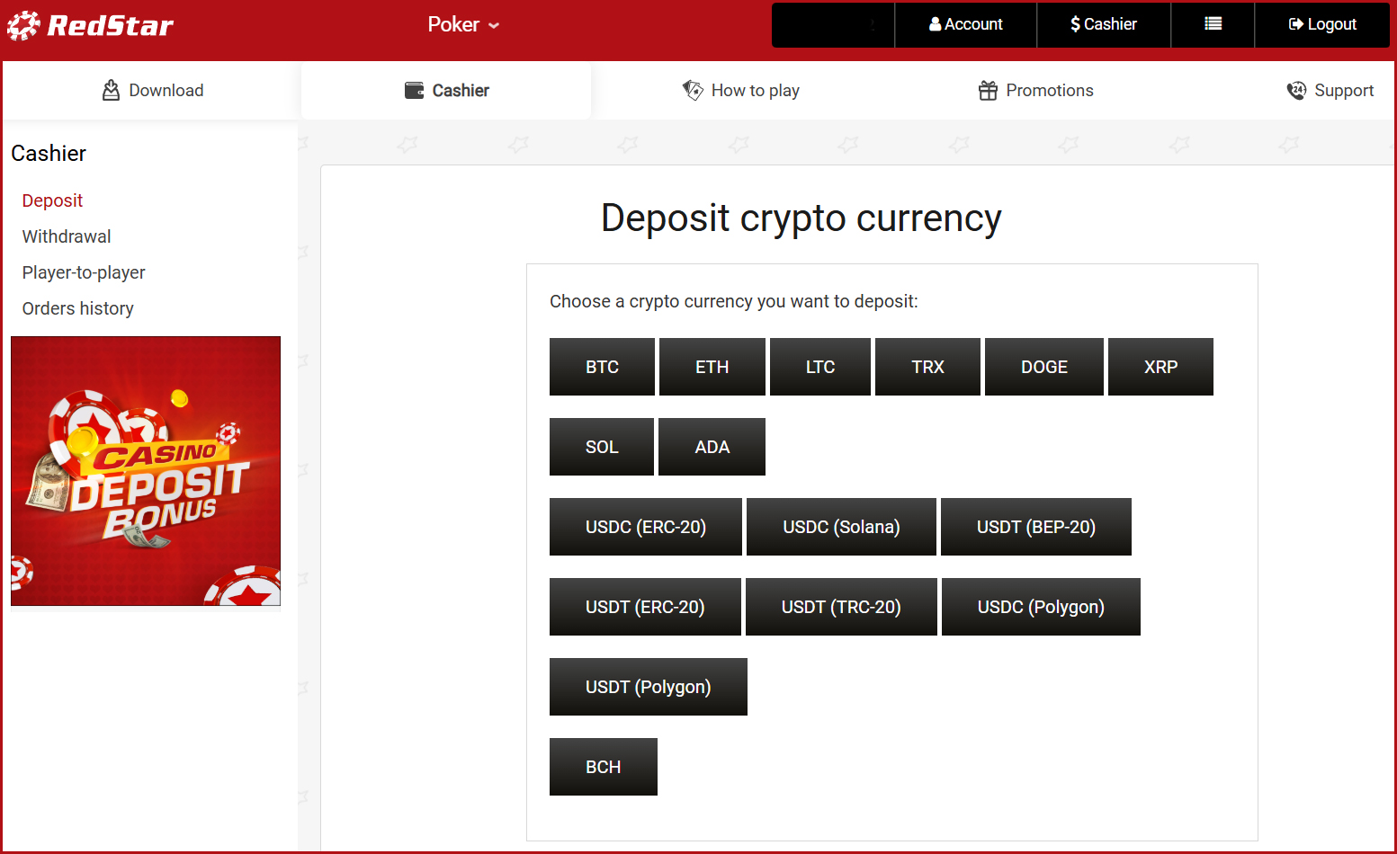 - В руме RedStar Poker доступны депозит и кешаут в криптовалюте