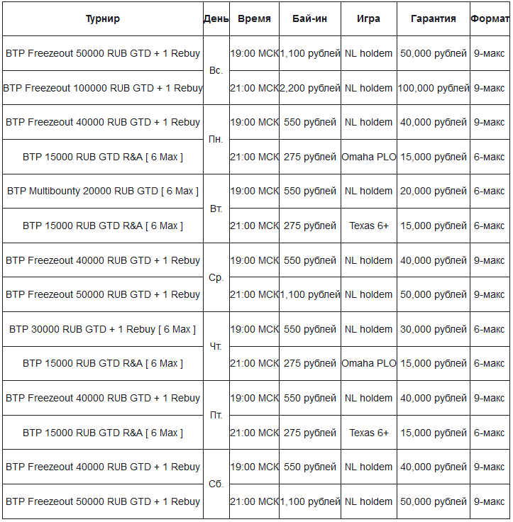 4. В турнирах не предусмотрены сделки за финальными столами, так как это рейтинговые турниры и занятое место имеет значение. Следить за своими результатами можно на странице акции. В акции участвуют только турниры с отметкой BPT в названии