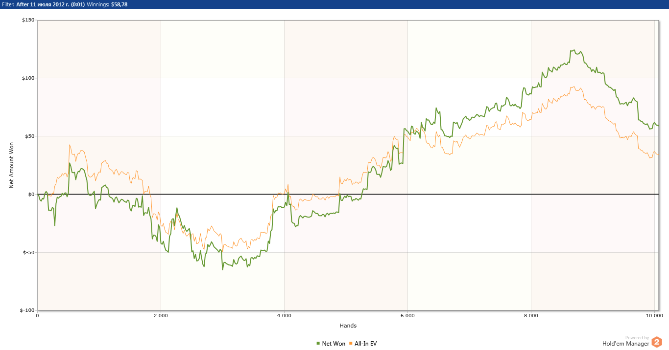 Итог пяти дней (здесь есть лишних около 5к рук, которые я отыграл в "выходные" дни. не знаю как их удалить для более точного результата):