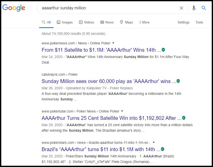 Хороший пример — история победы в юбилейном Sunday Million микролимитчика из Бразилии Алекса «AAAArthur» Брито, которая в марте 2020 облетела все аффилейтские сайты и ресурсы PokerStars.