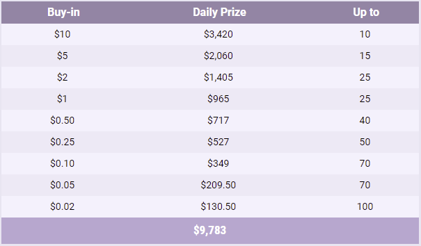 Ежедневно проходит рейк-гонка Prize Booster на $10,000. Всё, что надо делать — играть. На каждом лимите своя гонка со своими призами. Начисление очков происходит только в рейковых раздачах (с 09:00 по 11:00 МСК счастливые часы — начисление очков увеличено в 1,5 раз).